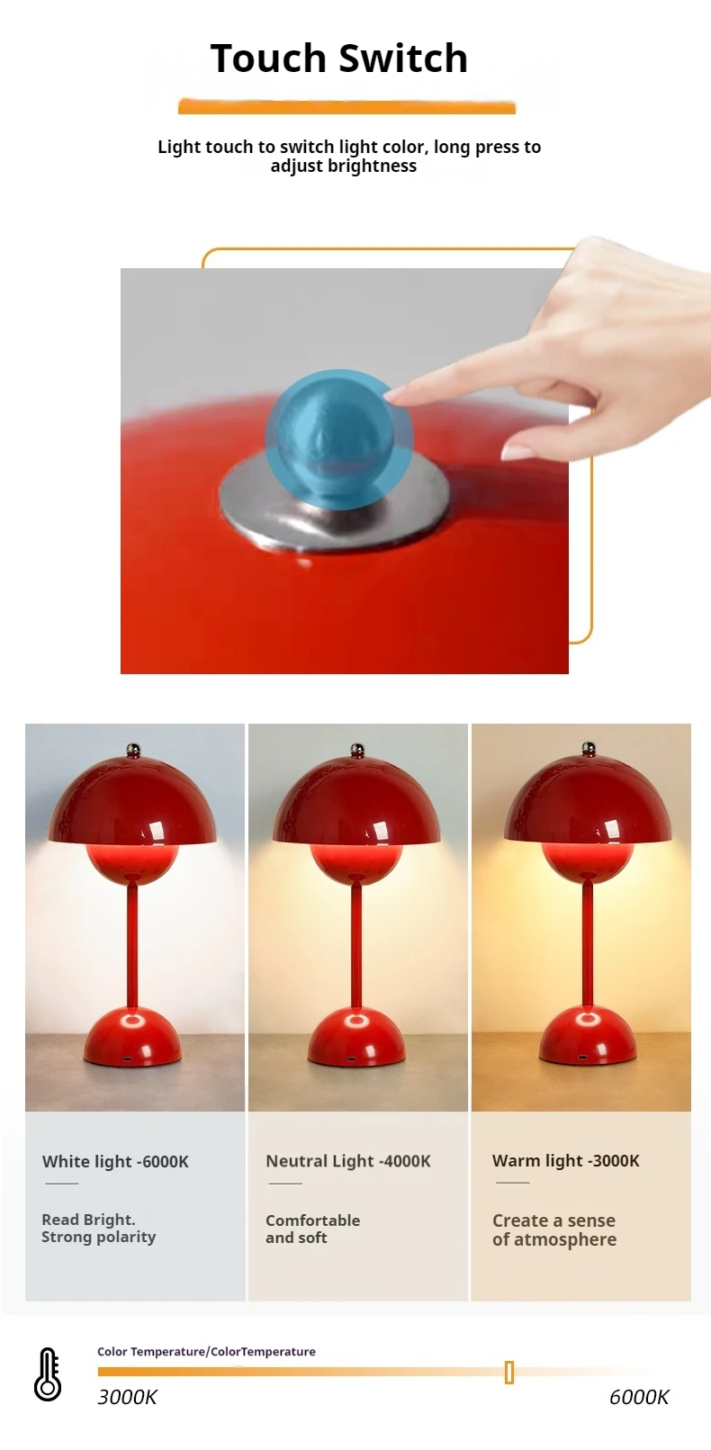 - Brightness Adjustment: Long press the top touch switch (round iron ball) to adjust the brightness.