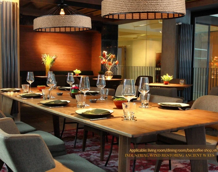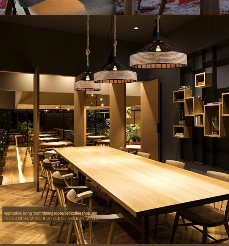 • Classic Hemp Rope Design :The pendant light features a classic hemp rope design, adding a touch of retro charm to any space. Its antique industrial iron finish is sure to catch the eye and enhance the aesthetic appeal of your dining room.