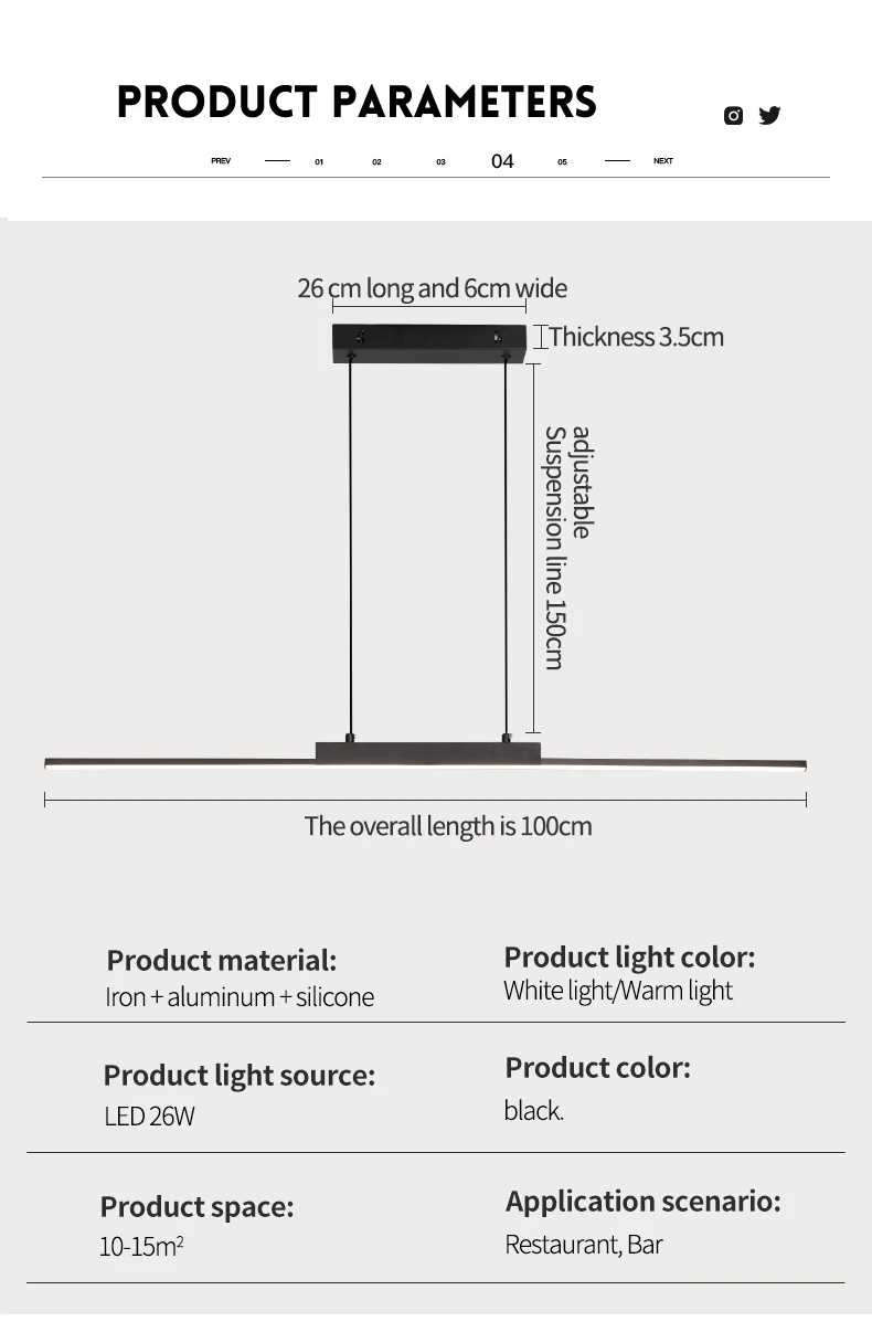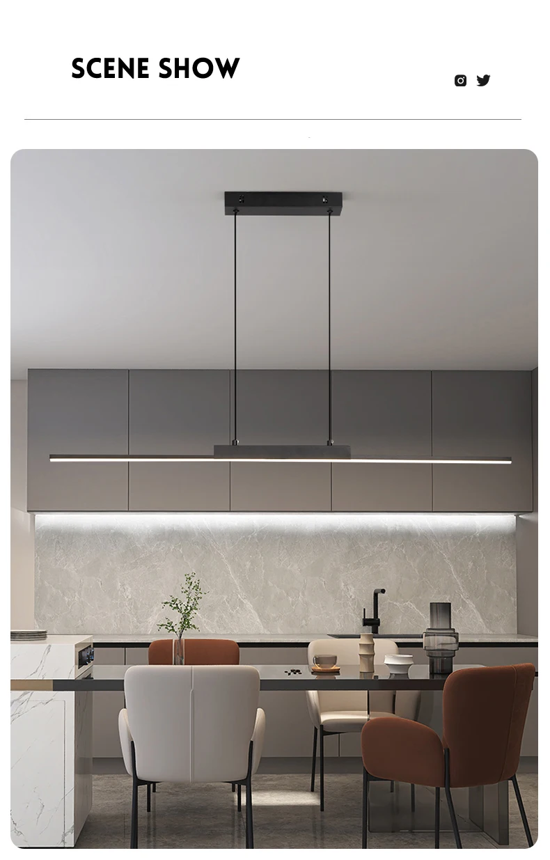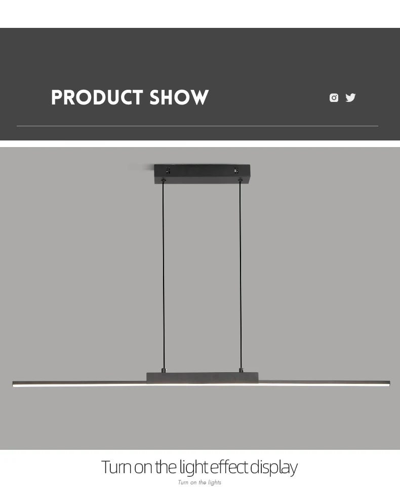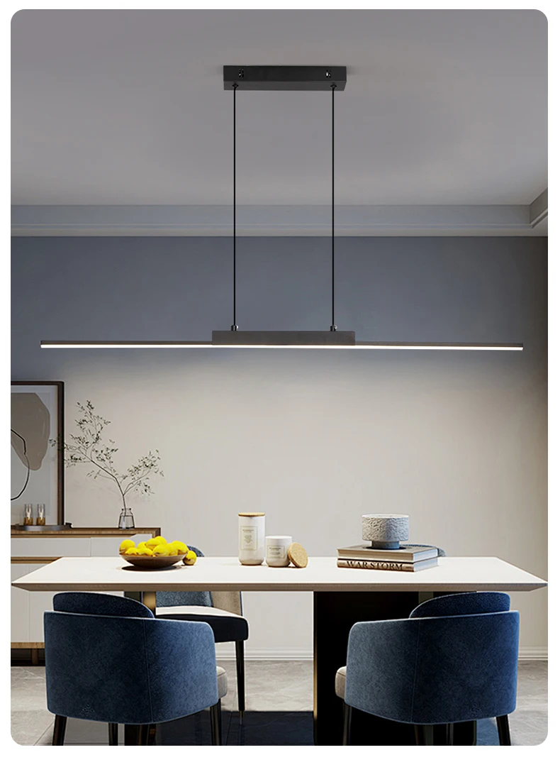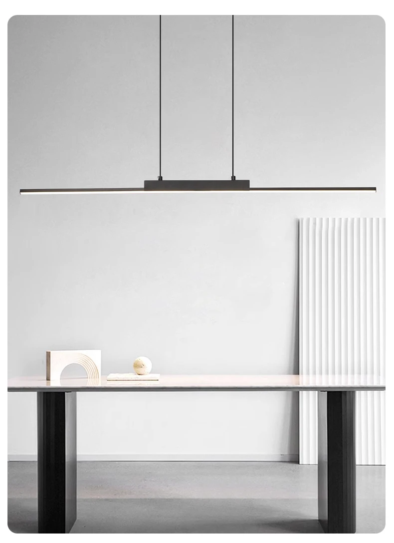LONG PENDANT LIGHT | IN THE DINING ROOM | SIZE:100*2CM | BLACK | POWER:26W