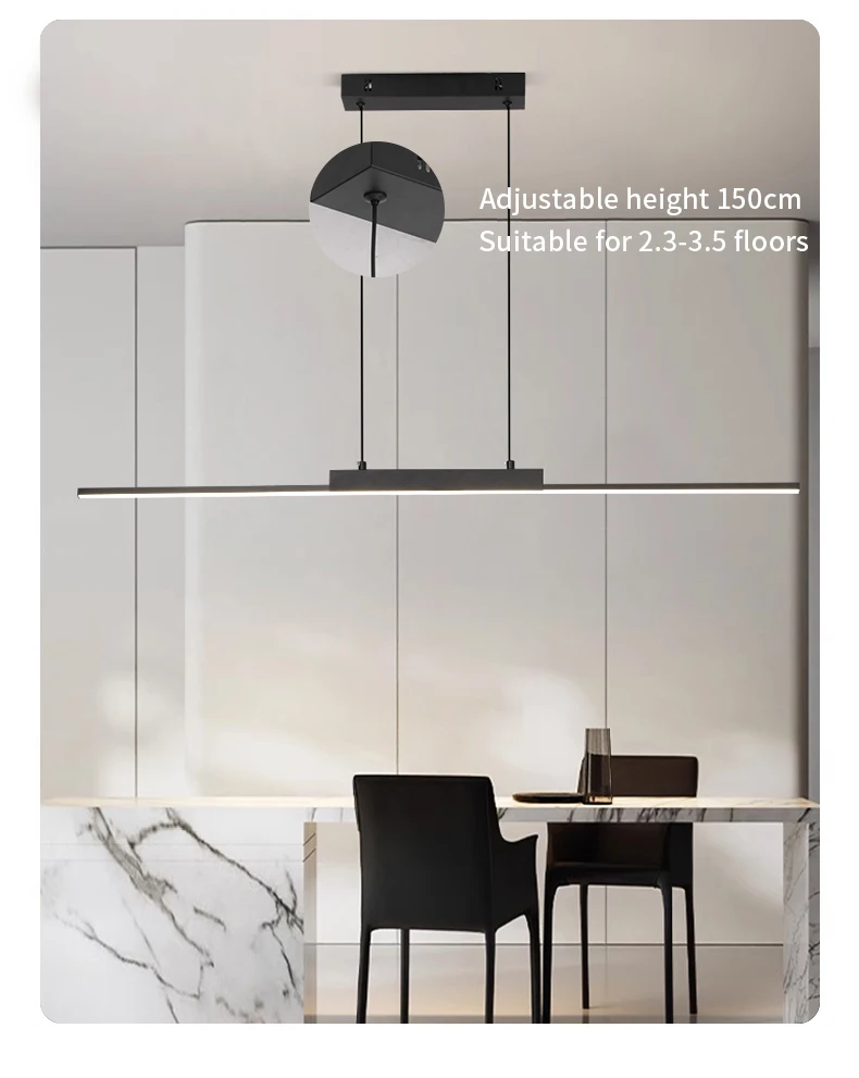 LONG PENDANT LIGHT | IN THE DINING ROOM | SIZE:150*2CM | BLACK | POWER:26W